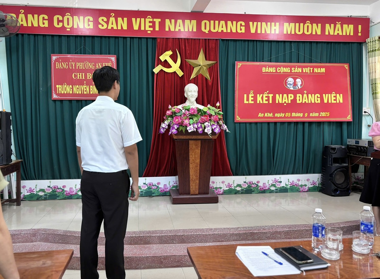 Thực hiện việc phát triển Đảng viên, thời gian vừa qua Chi bộ trường Trường đã long trọng tổ chức lễ kết nạp Đảng viên mới đối với 3 quần chúng ưu tú: Nguyễn Thị Huệ, Nguyễn Thị Như Quỳnh, Bùi Vĩnh Lộc. Đây là sự kiện có ý nghĩa quan trọng trong công tác xây dựng Đảng, góp phần phát triển, nâng cao chất lượng và sức chiến đấu của Chi bộ trường nói chung và các cá nhân Đảng viên nói riêng.