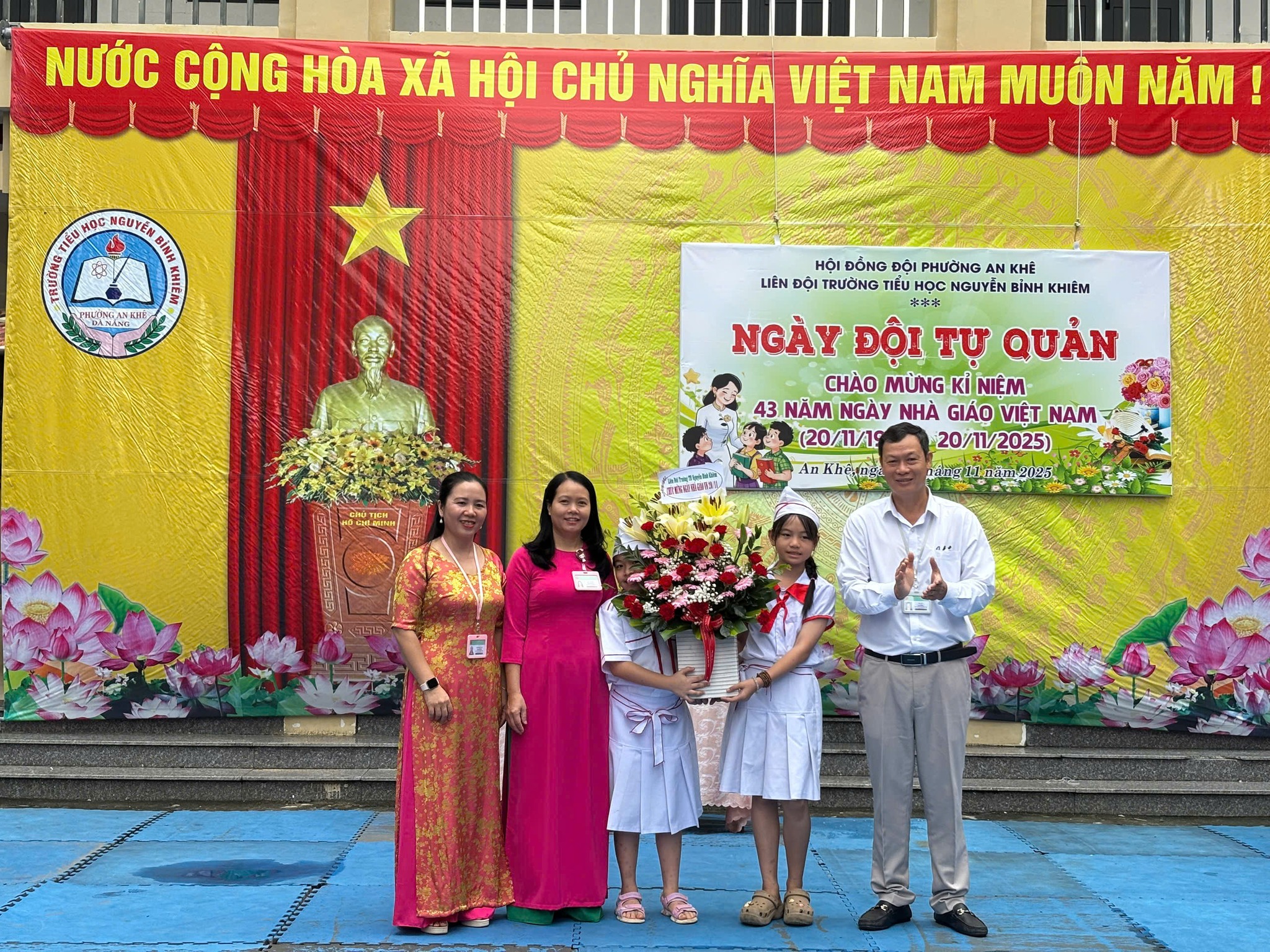 Liên đội tổ chức Ngày Đội tự quản – thay lời tri ân sâu sắc gửi đến quý thầy cô bằng những bó hoa tươi thắm, những lời chúc chân thành và những hành động đẹp của các em học sinh.