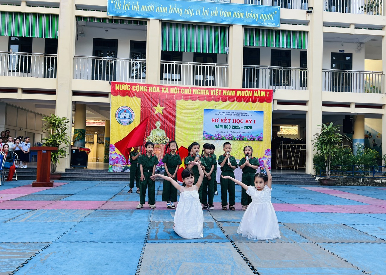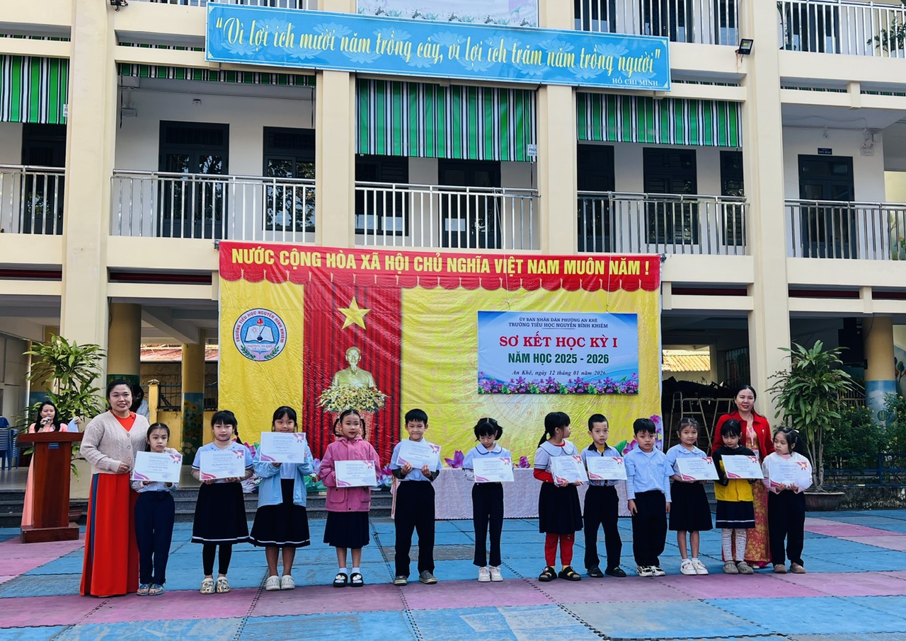 Nhằm đánh giá kết quả học tập và rèn luyện của học sinh trong học kỳ I năm học 2025–2026, sáng nay Trường Tiểu học Nguyễn Bỉnh Khiêm đã tổ chức **Lễ sơ kết học kỳ I kết hợp tuyên dương, khen thưởng phong trào “Học tốt”**.